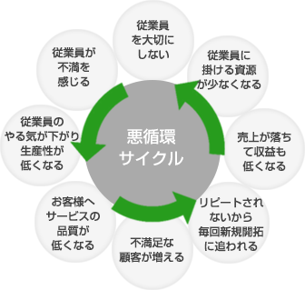 無理なノルマ、過重労働により、社員に身体や精神に害を与えたりといったことでは、会社そのものの存在意義が問われかねません。