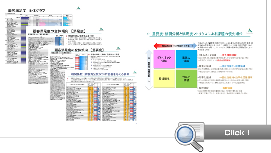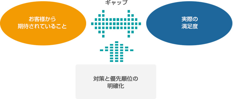 この調査では、お客様の期待度と満足度を測定し、どのポイントに力を入れて対策をすれば効果が上がりやすいかを明確にします。